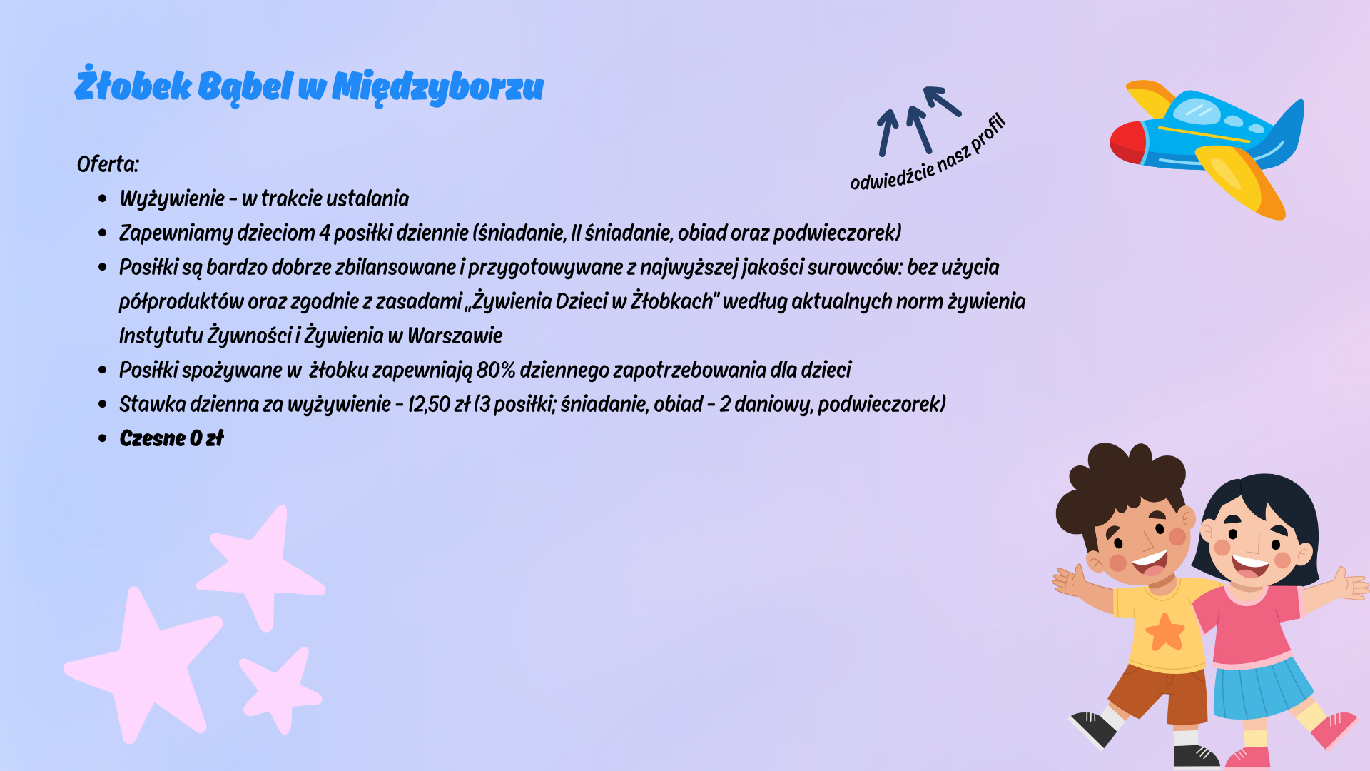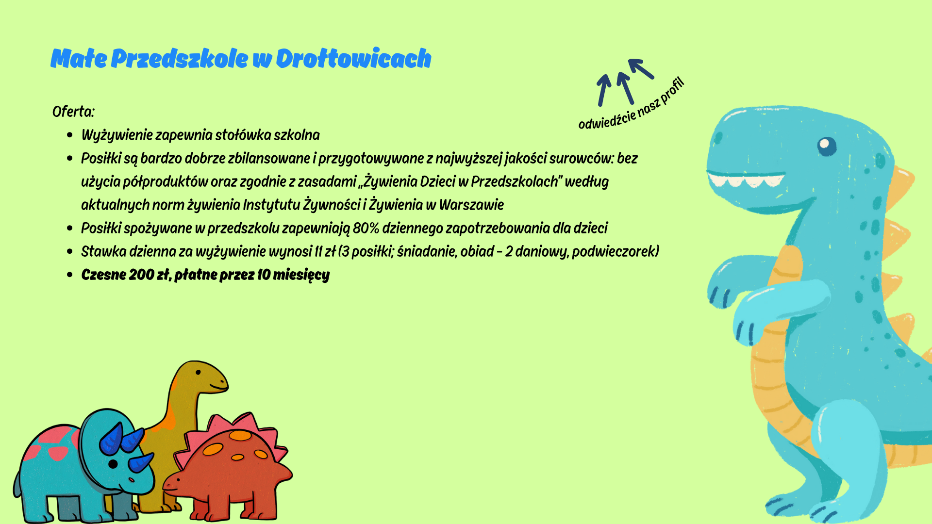 - Stawka dzienna za wyżywienie – 12,50 zł (3 posiłki; śniadanie, obiad – 2 daniowy, podwieczorek)